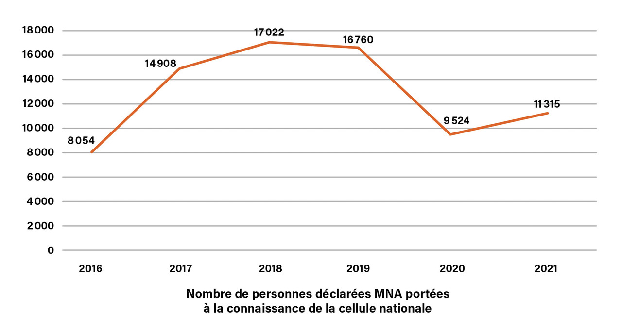 Les mineurs non accompagnés (MNA) sont de plus en plus nombreux sur le territoire français : au 31 décembre 2021, 19 893 jeunes sont accueillis par les départements au titre de la protection de l’enfance. En 2021, la mission MNA a constaté une augmentation du flux de 18,81 % par rapport à l’année 2020 (