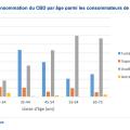Les modes de consommation diffèrent selon l’âge : les jeunes consomment majoritairement le CBD en le fumant, alors que les plus âgés le consomment plutôt par voie orale (fig. 2), suggérant des motivations différentes d’utilisation du produit – une alternative au joint « classique » versus un usage plutôt à visée « bien-être » voire autothérapeutique.