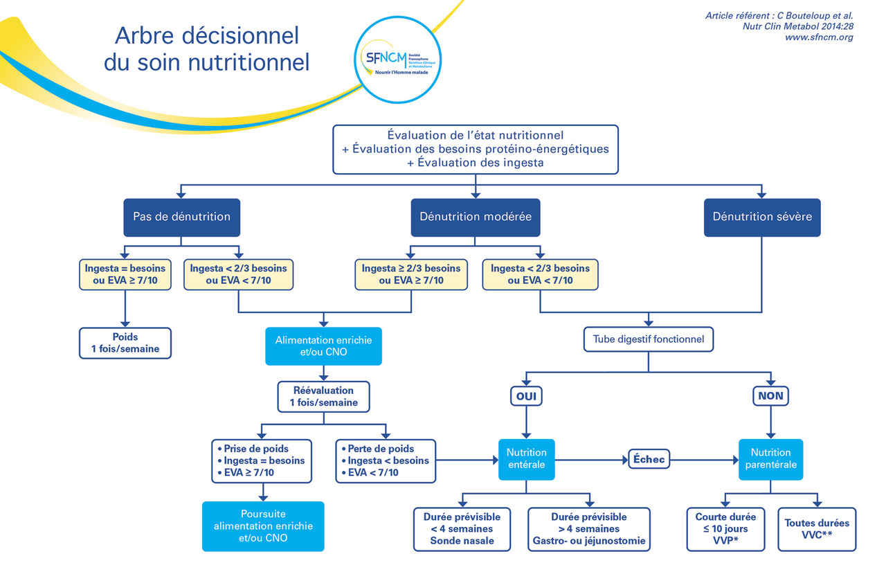 La Société francophone de nutrition clinique et métabolisme a défini un arbre décisionnel du soin nutritionnel (