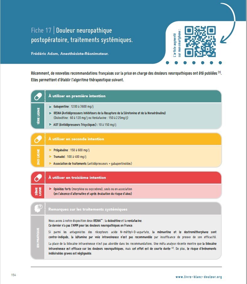 - Fiche 17 – Douleur neuropathique postopératoire, traitements systémiques