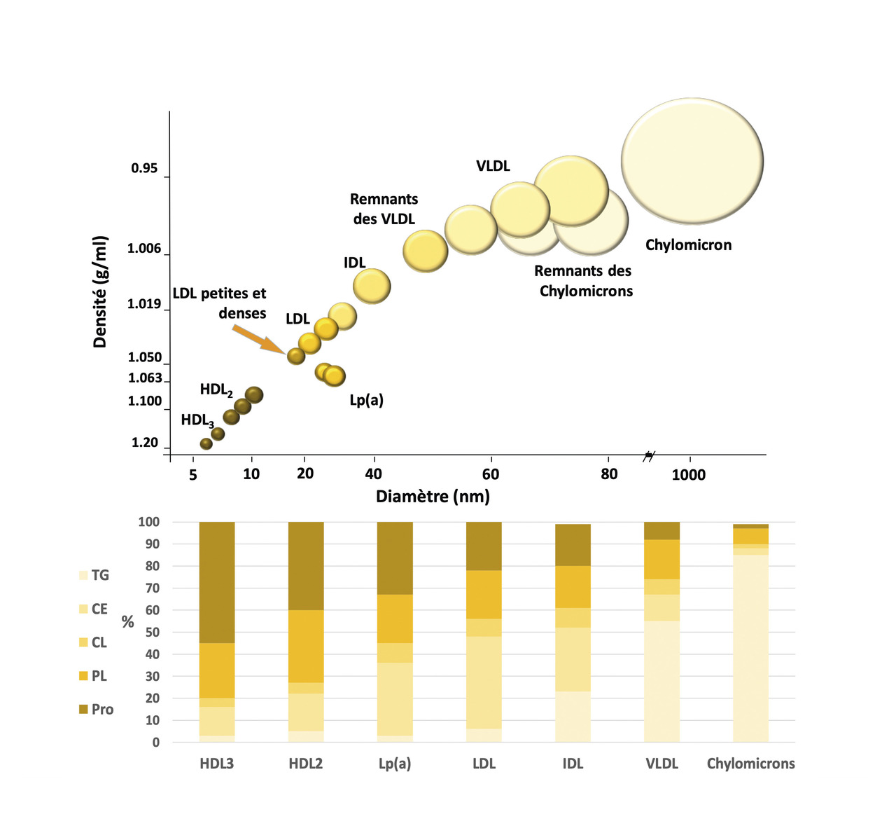 La composition et la densité des lipoprotéines détermineront leur volume (