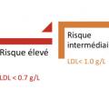 risque bas (objectif LDL-c < 1,16 g/L) et EAL montrant un LDL-c égal à 1,68 g/L (seuil d’intervention).