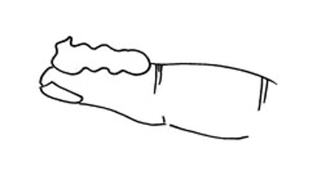 Le patient doit également être capable d’appliquer correctement son traitement dermocorticoïde grâce à la règle de l’unité phalangette (fig. 8) : quantité de crème déposée d’un trait continu sur toute la longueur de la dernière phalange de l’index d’un adulte. Cette quantité permet de traiter une surface de peau correspondant à la surface des deux mains d’un adulte.