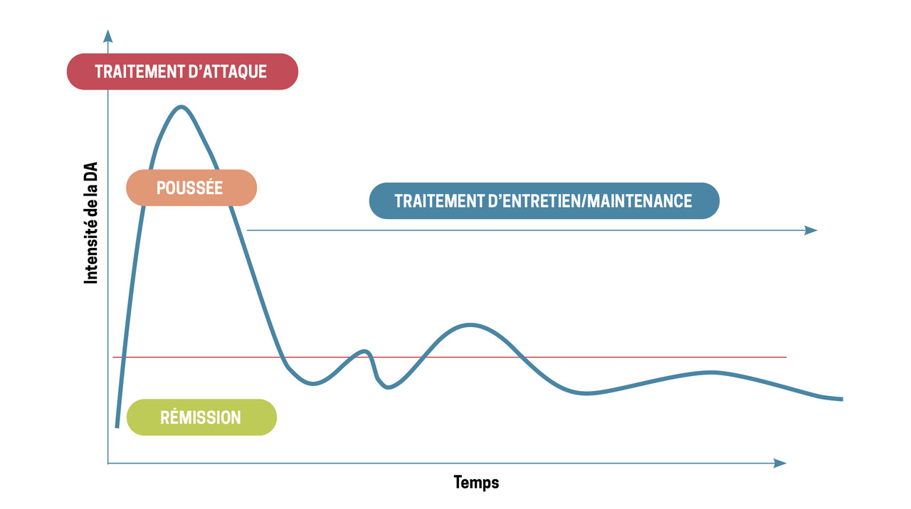 Après traitement de la poussée, le protocole d’entretien doit être poursuivi au long cours.