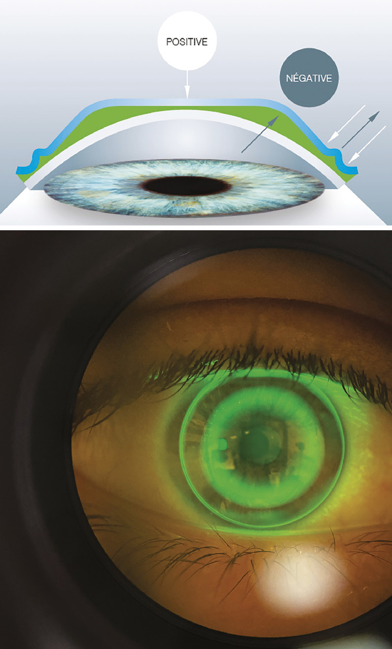 Ce profil optique ressemble à celui des lentilles rigides de nuit utilisées en orthokératologie et ralentit l’évolution de la myopie de 40 % en moyenne, avec nécessité d’un port minimale de 8 heures tous les jours. Ces lentilles ont un risque infectieux et d’inconfort plus important que les lentilles de nuit.