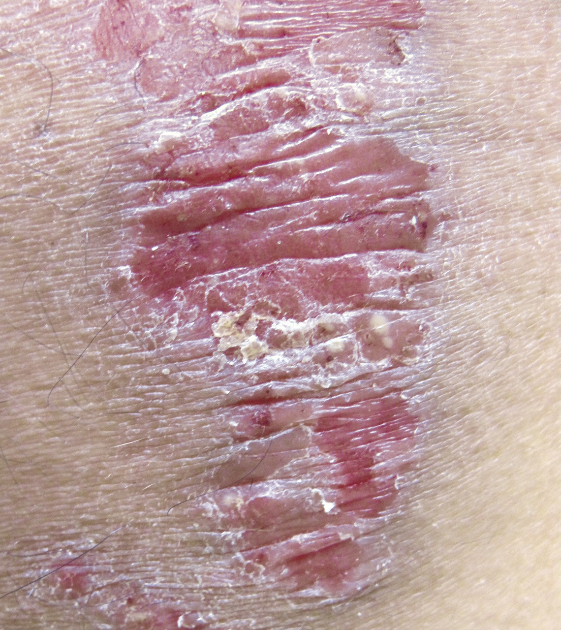Remerciements au Dr Emmanuel Mahé pour son autorisation de publication des photographies ci-contre. (Tournier A, Mahé E. Psoriasis. Rev Prat 2018;68:e205-9)