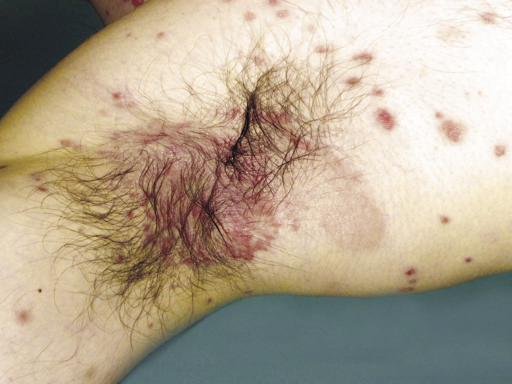 Le psoriasis en goutte ou le psoriasis inversé des plis sont d’autres formes de psoriasis assez fréquentes.