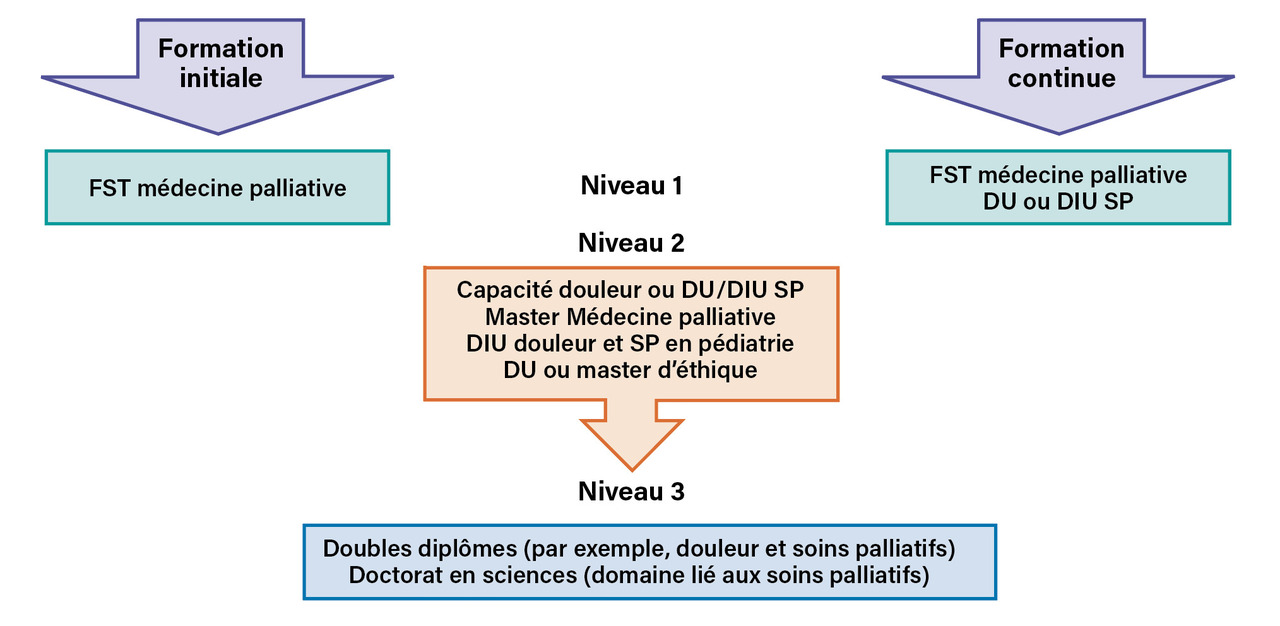 L’offre de formation en médecine palliative à l’intention des médecins se complète progressivement, permettant d’envisager un jour en France une offre en soins palliatifs adaptée aux besoins de la population.