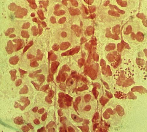 Le diagnostic est évoqué sur l’anamnèse et la clinique. Il est confirmé par l’analyse polymerase chain-reaction (PCR) d’un écouvillonnage rectal détectant simultanément Neisseria gonorrhoeae (fig. 2 ) et Chlamydia trachomatis. Ce prélèvement permet également la réalisation d’un antibiogramme.