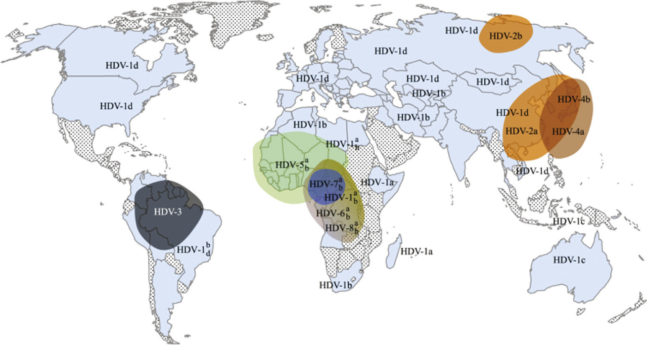 2. Le Gal F, Brichler S, Drugan T, et al. Genetic diversity and worldwide distribution of the deltavirus genus: a study of 2,152 clinical strains. Hepatology 2017;66:1826-41.
