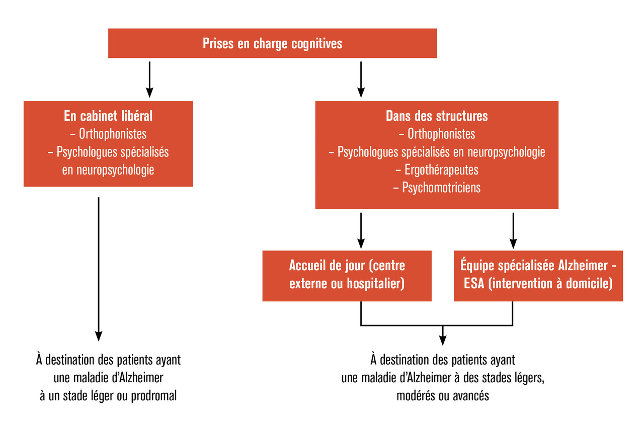 Enfin, la mise en place de stratégies de compensation des difficultés est importante pour maintenir l’autonomie du patient. Cela peut se faire par exemple par l’utilisation d’un agenda pour noter ses rendez-vous, d’un carnet pour noter les tâches à faire ou par la mise en place d’un pilulier pour aider le patient dans la gestion de ses médicaments. Des structures et des professionnels sont disponibles afin de mettre en place ces stimulations (fig. 2 ).