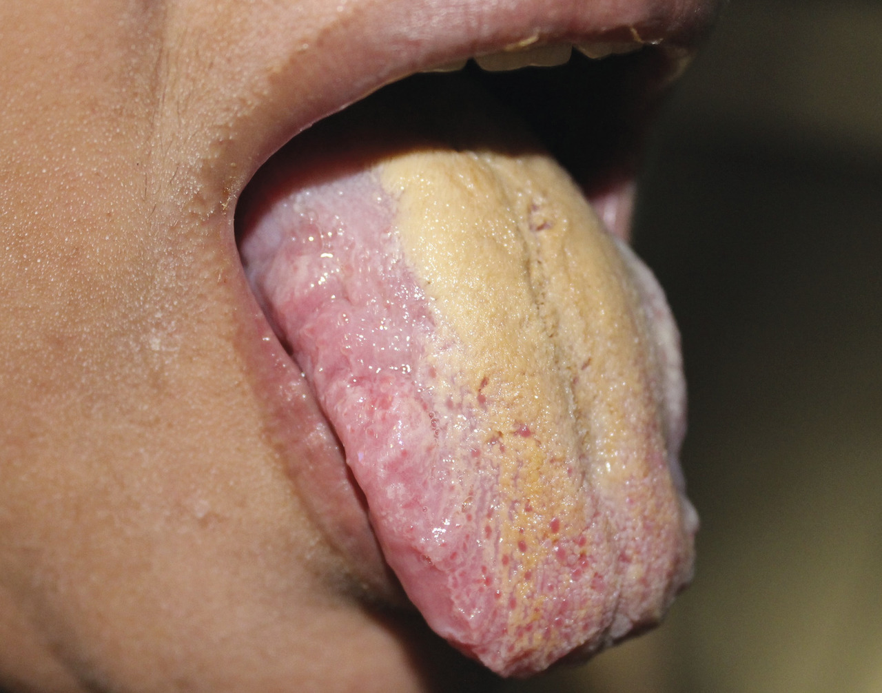 Cette affection correspond à un allongement kératosique des papilles filiformes, qui donnent un aspect chevelu à la langue. L’enduit se retrouve le plus souvent sur la face dorsale. La coloration est variable, allant du noir au brun-jaune.