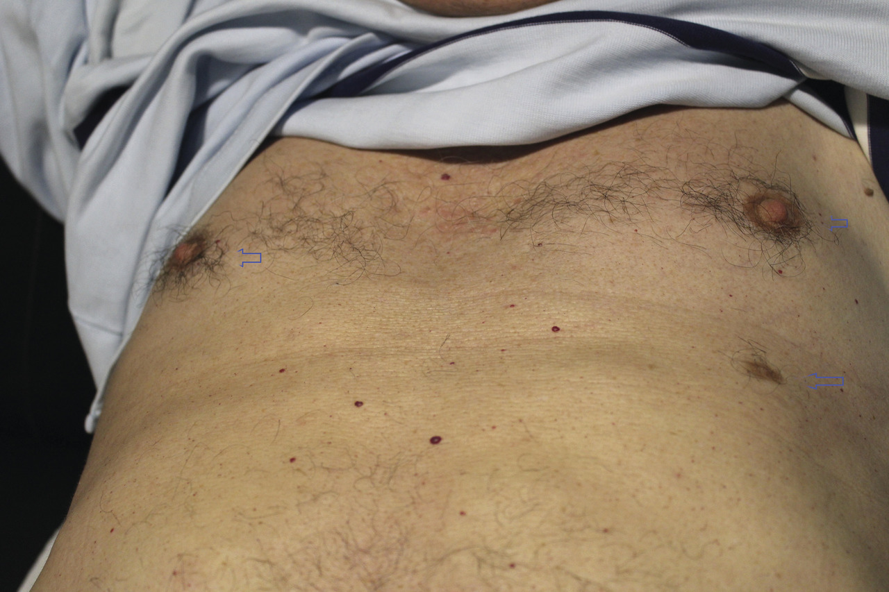 À l’examen d’Ivan, 64 ans, nous découvrons une formation au dessous de son sein gauche. Le patient pense qu’il s’agit d’un grain de beauté.