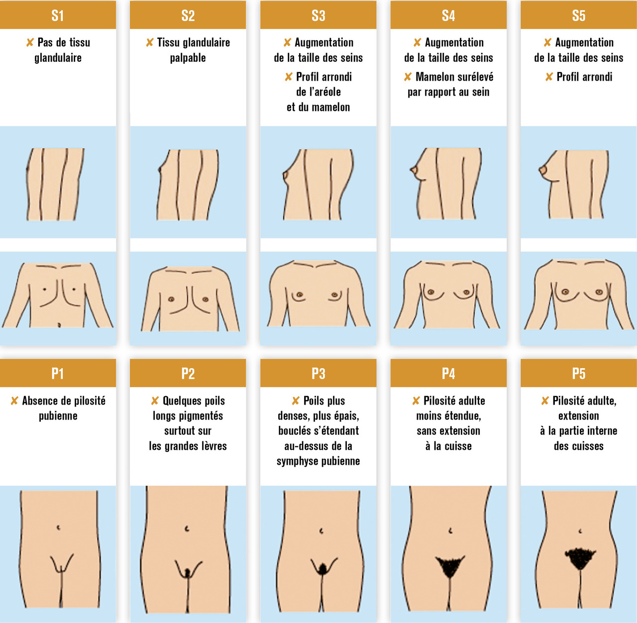 Les premières règles apparaissent en général au cours des 2 ans suivant le début de la puberté. Une échographie par voie sus-pubienne permet d’évaluer, tous les 6 mois à partir du stade pubertaire de Tanner S3 (