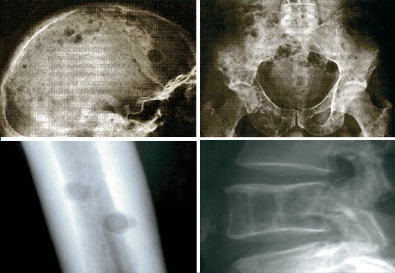 Les douleurs osseuses sont le mode de découverte le plus fréquent : rachidiennes en particulier, d’horaire inflammatoire (penser à un myélome avant de prescrire des AINS), fractures costales ou parfois fracture pathologique.