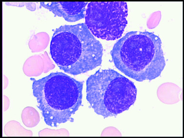 – myélogramme montrant la prolifération plasmocytaire, avec des cellules souvent dystrophiques.