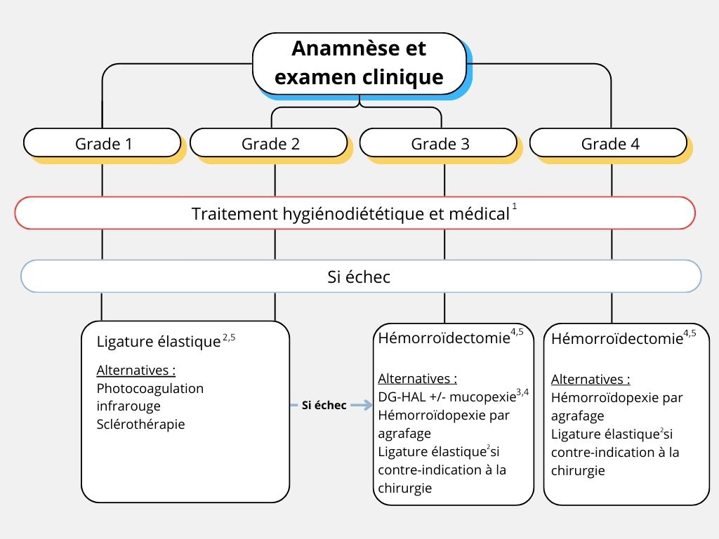 - Il faut adresser les patients à un spécialiste de la pathologie hémorroïdaire (gastroentérologue ou chirurgien viscéral) pour les orienter sur la stratégie thérapeutique.