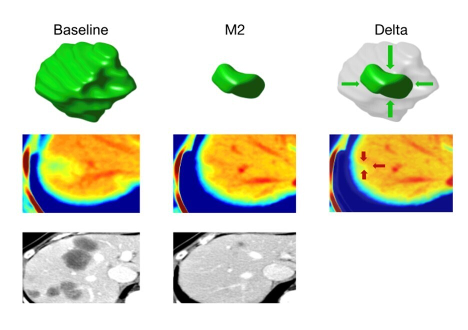 Une approche prometteuse pour réduire la variabilité dans l’interprétation des images est la radiomique, qui consiste à quantifier des caractéristiques d’imagerie qualitatives qui n’étaient auparavant que subjectivement interprétées. Ces résultats numériques peuvent être utilisés pour représenter les caractéristiques d’une tumeur telles que la nature de ses bords, sa texture et sa forme. Cette approche a été utilisée pour analyser les tumeurs dans des études préliminaires sur le cancer colorectal et pour prédire la réponse au traitement (fig. 4).17