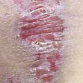 - « l’érythrodermie psoriasique » correspond à une atteinte de plus de 90 % de la surface corporelle, qui peut être progressive ou brutale (secondaire à un arrêt thérapeutique, par exemple), avec desquamation importante. Les risques de surinfection, de déshydratation et troubles hydroélectrolytiques conduisent à hospitaliser ces patients. Le diagnostic différentiel d’avec les autres causes d’érythrodermie peut être difficile en cas de psoriasis non connu antérieurement.