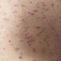 Ces lésions peuvent être uniques, ou plus souvent multiples et relativement symétriques, réparties en plaques (fig. 2) ou en gouttes (lésions de moins de 1 cm de diamètre) [fig. 3].