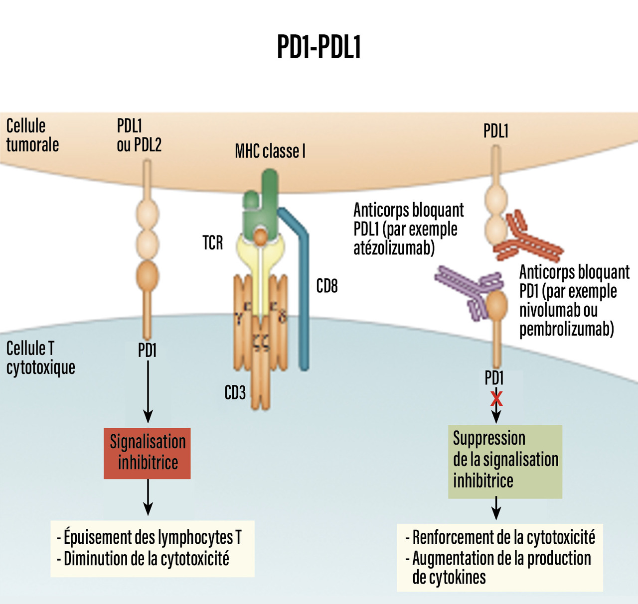 Concernant la toxicité spécifique des anti-PD1, les patients doivent être continuellement surveillés car un effet indésirable peut survenir au début, pendant ou après l’arrêt du traitement. Les effets indésirables les plus fréquents sont une fatigue, un rash, un prurit, des diarrhées et des nausées, des arthralgies.