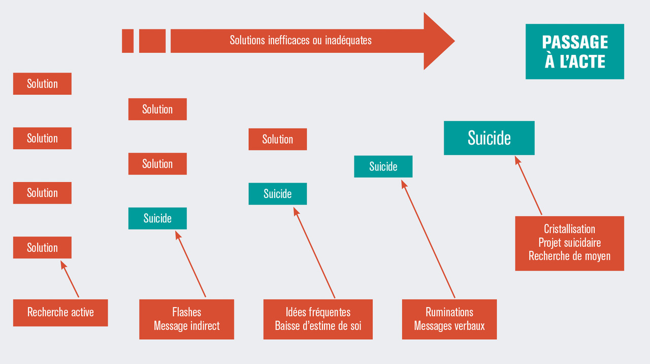 Elle est précédée du syndrome pré-suicidaire décrit dès 1976 et constitué de la triade suivante :2