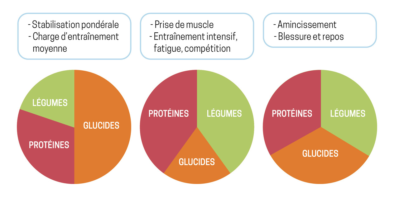En fonction des différentes phases d’entraînement et des objectifs de préparation, la quantité de féculents consommée doit être modifiée (fig. 4).