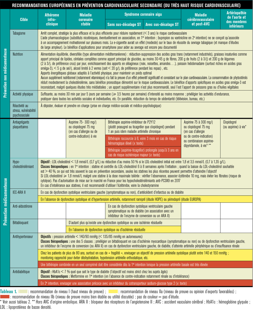 En cas de maladie coronarienne stable, symptomatique ou non, il n’y a pas de changement notable des recommandations.16