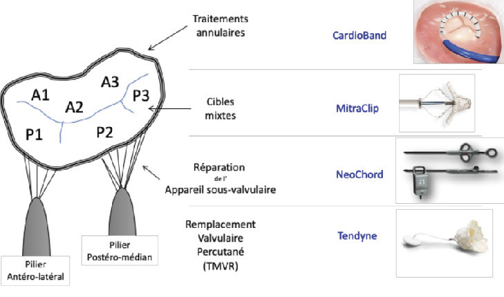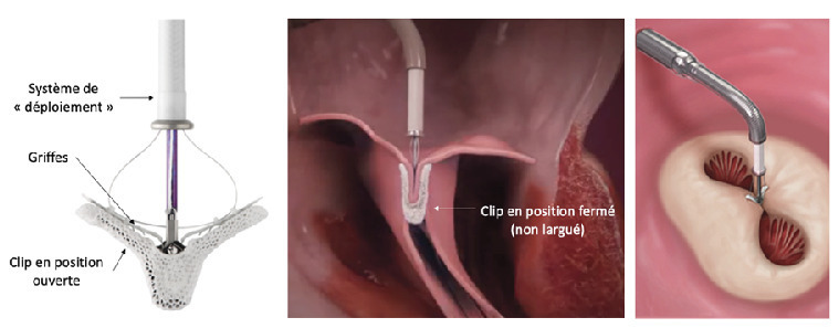 Le dispositif MitraClip (Abbott) et les TMVR sont aujourd’hui les outils les plus aboutis et les mieux étudiés.