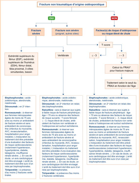 Les patientes à risque élevé de fracture (et donc pour lesquelles un traitement est indiqué) sont définies comme :