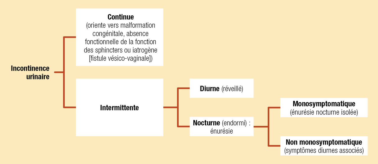 fig. 1 ). L’énurésie (incontinence nocturne) est dite primaire ou secondaire s’il y a déjà eu une période d’au moins 6 mois de continence ;
