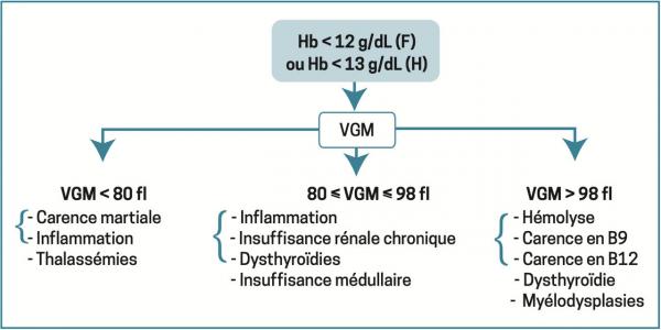 L'’accolade bleue indique les causes les plus fréquentes. Lire aussi Article WebAnémie : vigilance avant, pendant et après la grossesse ArticleAnémie de la femme enceinte ExerciceQuels sont les seuils définissant l’anémie établis par l’OMS en 2024 ? Article WebAnémie : trouver la cause ArticleLe syndrome de Lasthénie de Ferjol Article WebAnémie du sujet âgé : quelles particularités ?